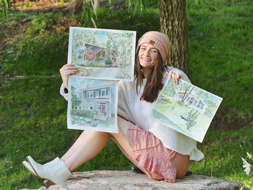 Today, Isabelle finds her greatest inspiration in the homes that hold our stories. She is honored to translate the foundation of your memories into watercolor, preserving the places you call home.